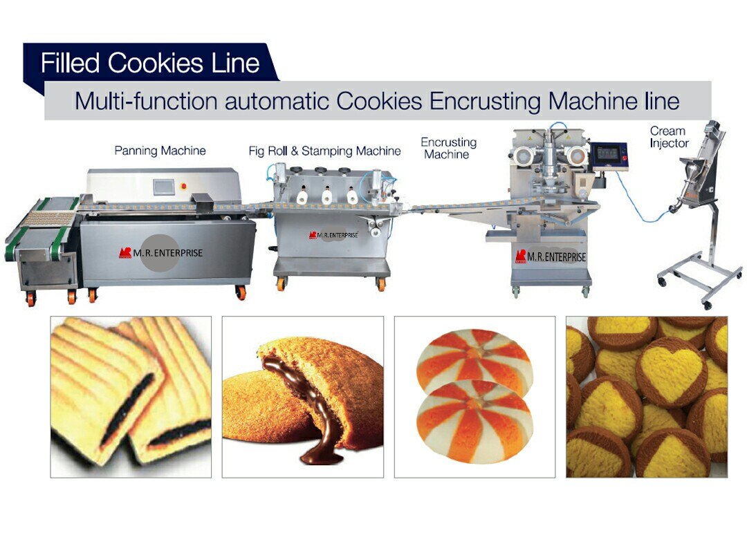 Computerized machine for the automatic forming and dosing on trays of liquid, dense and hard dough. The computer can store various programs which makes products changeover simple and quick. • The easy adjustment of the parameters of each program facilitates the operator in creating biscuits according to his fantasy. • Wire cutting device permits the production of short pastry type cookies and similar from hard dough. • The machine is constructed in stainless steel & food grade anticordal aluminum. • The low height of the hopper enables easy access for loading the dough into the hopper. • Particular attention has been given to quick disassembly of the parts in contact with dough, in order to effect a through cleaning. Product Specification • Adjustable speed and time of depositing rollers. • Reverse cycle of depositing rollers for clean detachment. • Computerized adjustable speed for rotation of nozzles. • Automatic lowering of tray for efficient detachment. • Automatic advancement of tray. • Height adjustable conveyor belt. • Convenient position of electrical panel for easy maintenance. • Anti-slip conveyor belts in order to ensure the precise position of the cookies on the tray. • Production output/day displayed computer. • Adjustments for number of biscuits to be deposited per tray. • Heavy duty motors and electronic circuits designed to tolerate bearing power supply conditions. • Motor protections to protect alterations essential parameters by workers. • Fault display and method of rectification of fault automatically displayed by computer. • Special ex model to produce conical and multilayer cookies. Technical Specification Sl. No. Dropping Points Tray Width Required Production of Machine Required Power Dimension of Machine (LxWxH) Weight of Machine 1 4 10" 40-60 kg/hr 2.5 kw 760 x 1040 x 1500 550 kg 2 5 12" - 14" 60-80 kg/hr 2.5 kw 760 x 1040 x 1500 600 kg 3 6 16" 100-150 kg/hr 2.5 kw 800 x 1050 x 1650 670 kg 4 7 18" 160-180 kg/hr 2.5 kw 810 x 1060 x 1670 700 kg 5 8 20" 180-200 kg/hr 3.0 kw 810 x 1060 x 1670 730 kg 6 9 24" 200-220 kg/hr 3.5 kw 800 x 1200 x 1650 800 kg 7 10 27" 220-250 kg/hr 3.5 kw 810 x 1210 x 1660 860 kg 8 12 32" 260-350 kg/hr 4.5 kw 810 x 1210 x 1660 1100 kg